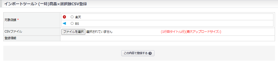 出品>インポートツール>(一時)商品×選択肢CSV登録