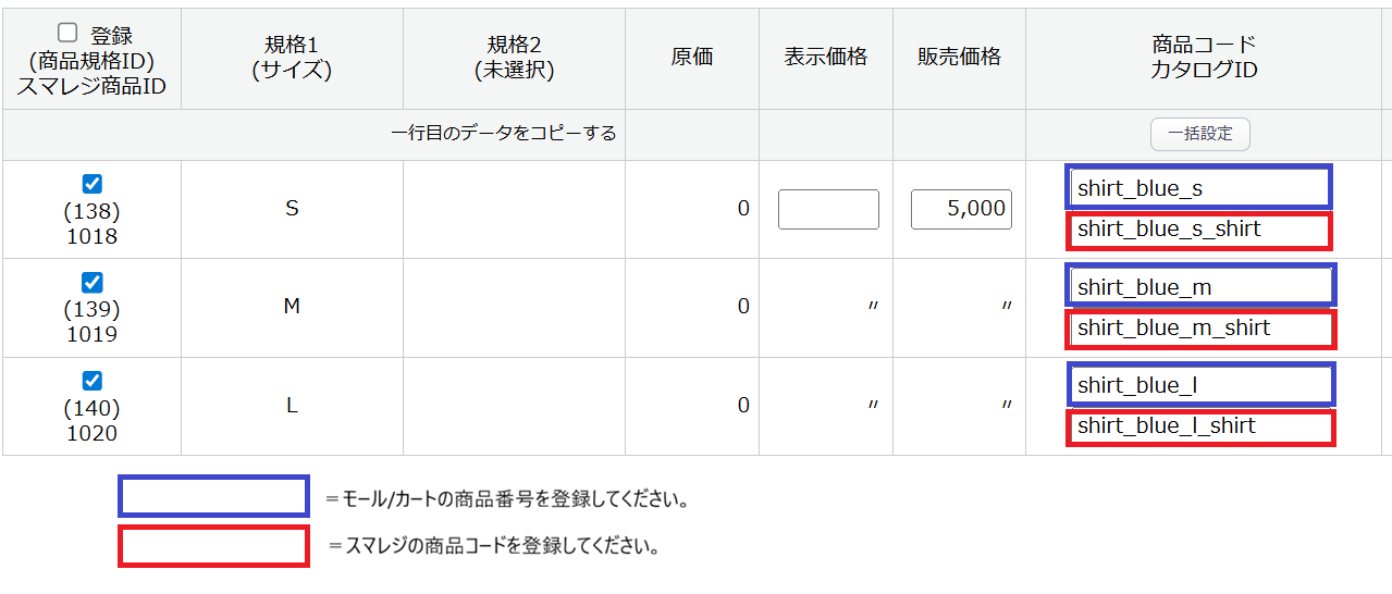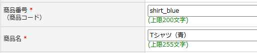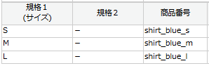 例)商品番号 モール:shirt_blue_s shirt_blue_m shirt_blue_l