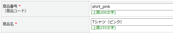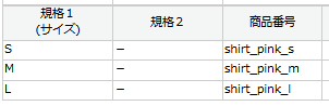 例)商品番号 モール:shirt_pink_s shirt_pink_m shirt_pink_l