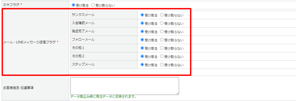| ②顧客識別フラグ | 顧客に識別フラグをつけている場合、フラグの種類をチェック |