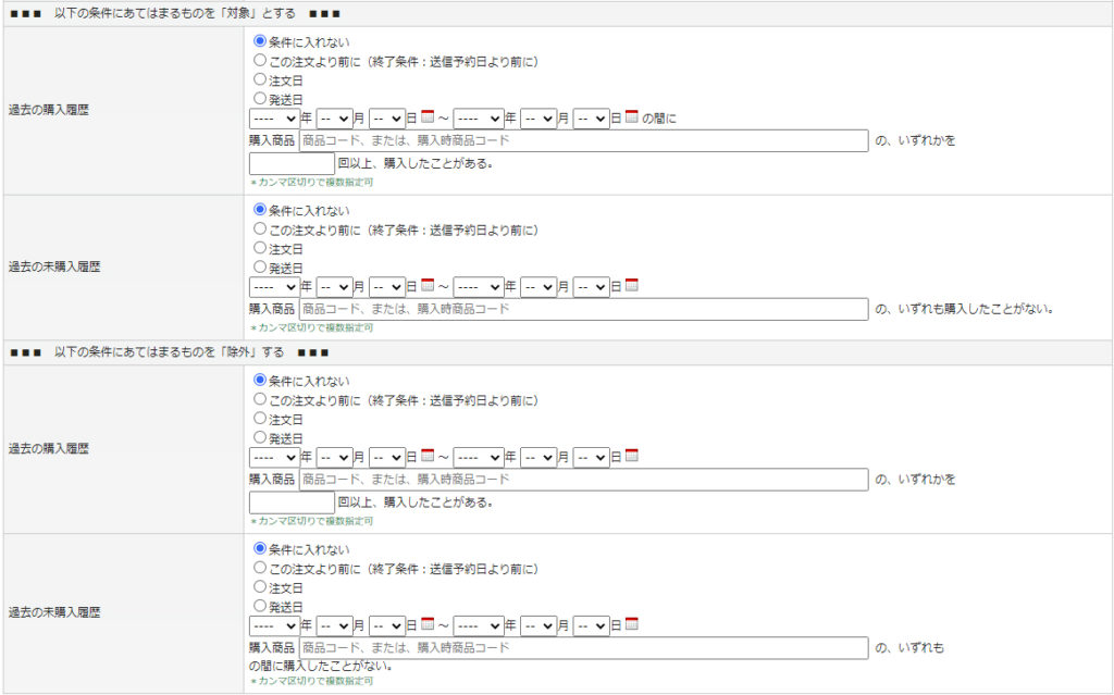 | 過去のメール送信履歴(除外条件) | 過去のメール送信履歴(除外条件)を指定 |