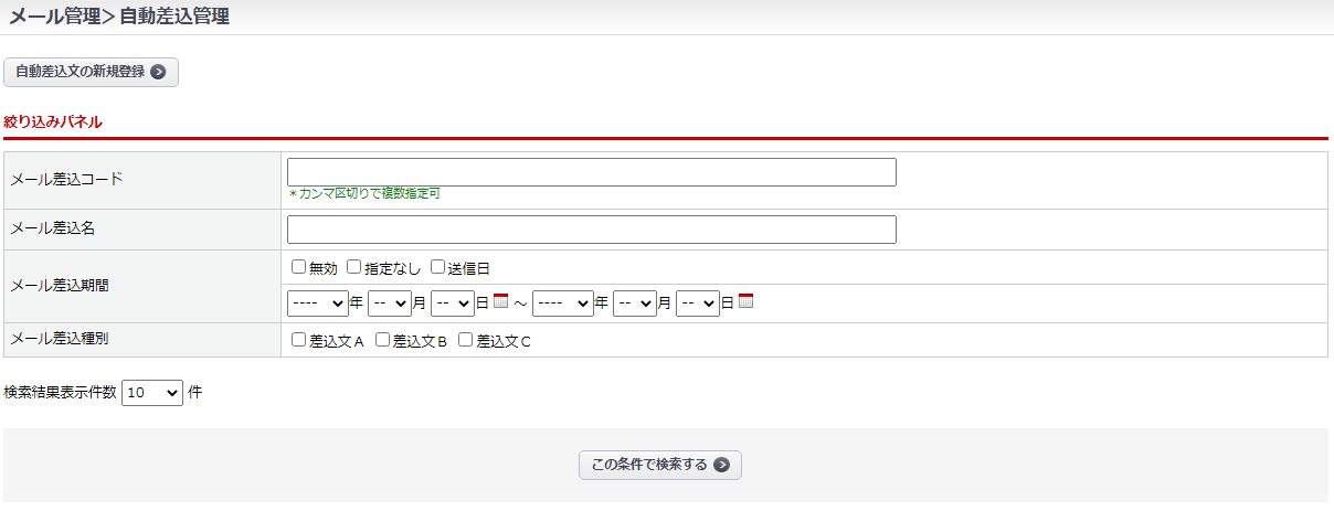 | メール差込種別 | 自動差込登録時に設定したメール差込種別 |