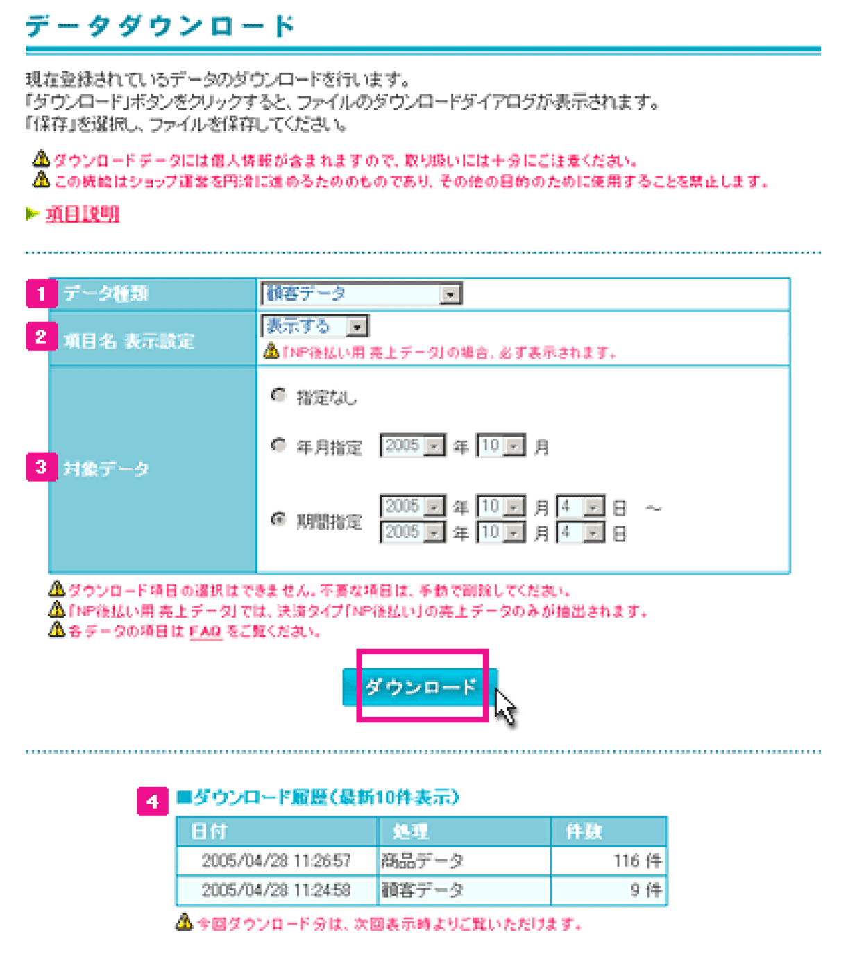 カラーミーショップでの受注データ(受注CSV)ダウンロード手順をご案内します。