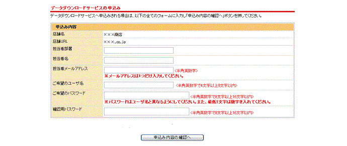 ダウンロード機能を利用するとき、毎回入力が必要となります。