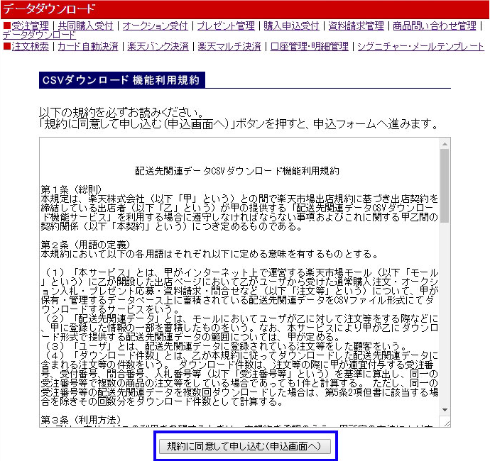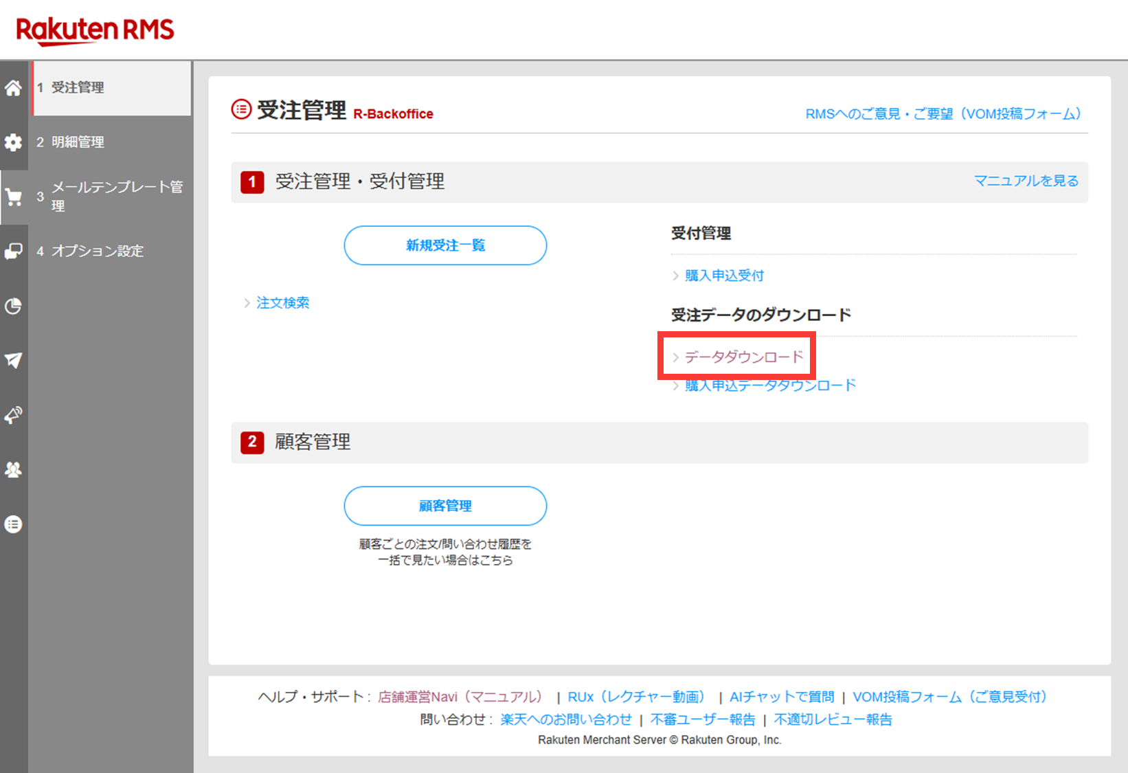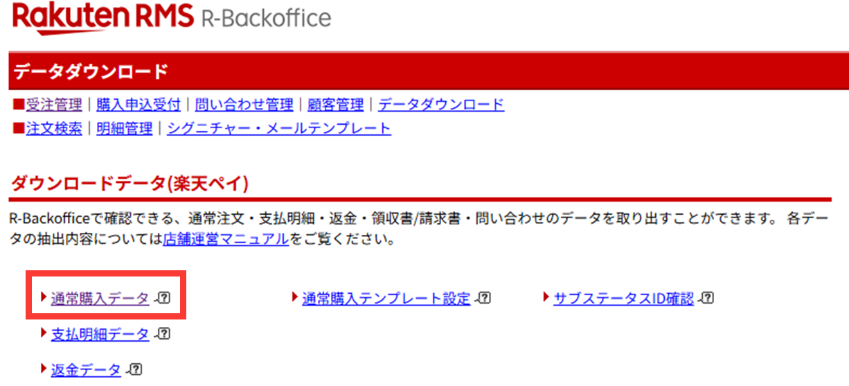 楽天RMSでの受注データ(受注CSV)ダウンロード手順をご案内します。