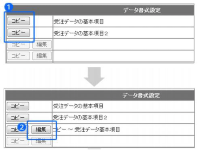 - データ書式設定>コピーをクリックする 受注データ基本項目 基本項目2どちらでもよい