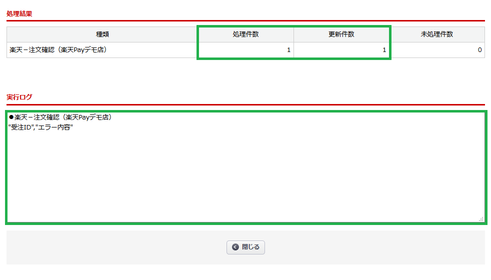 「処理件数と更新件数が合っているか」、「実行ログにエラーが表示されていないか」を確認します。