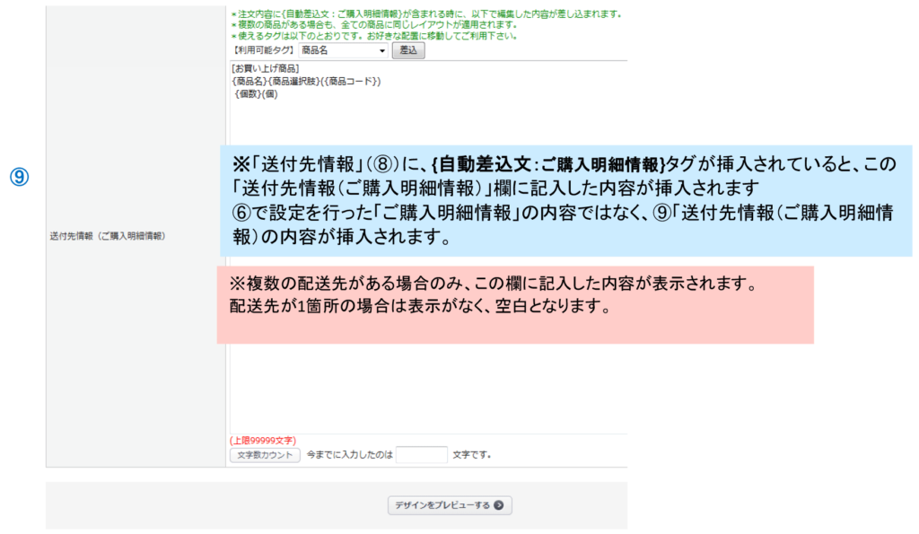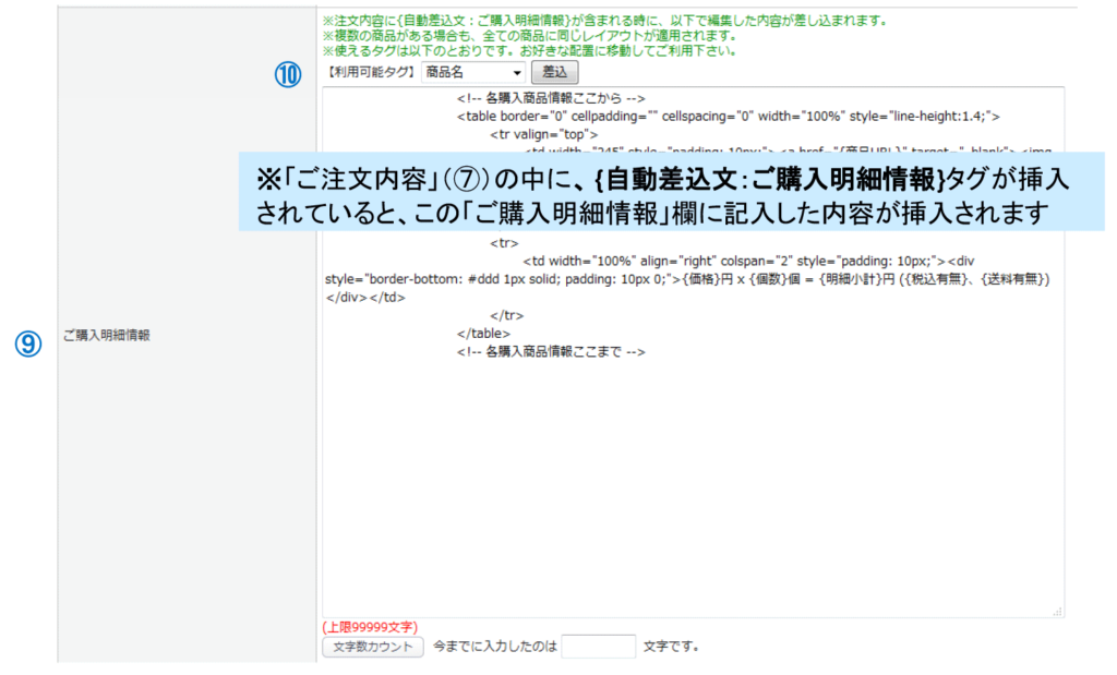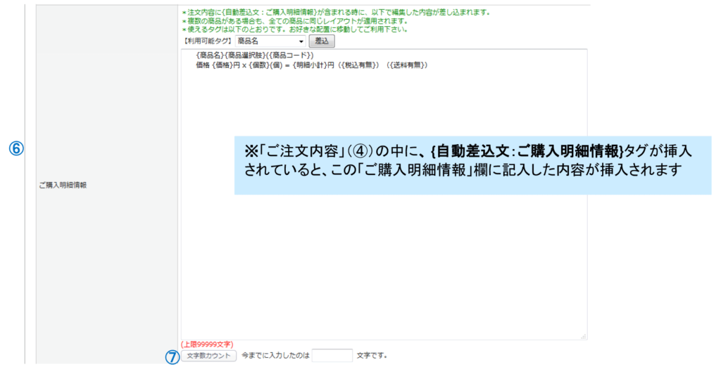 | ⑥ご購入明細情報 | 99999文字まで登録可能です。 |