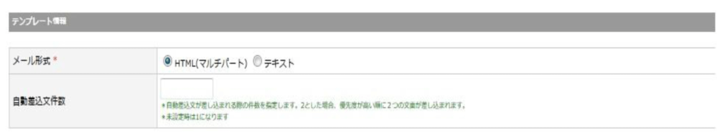 ※テキストにて作成した場合の説明となりますので、「テンプレート情報」の「メール形式」は「テキスト」を選択し、読み進めて下さい。