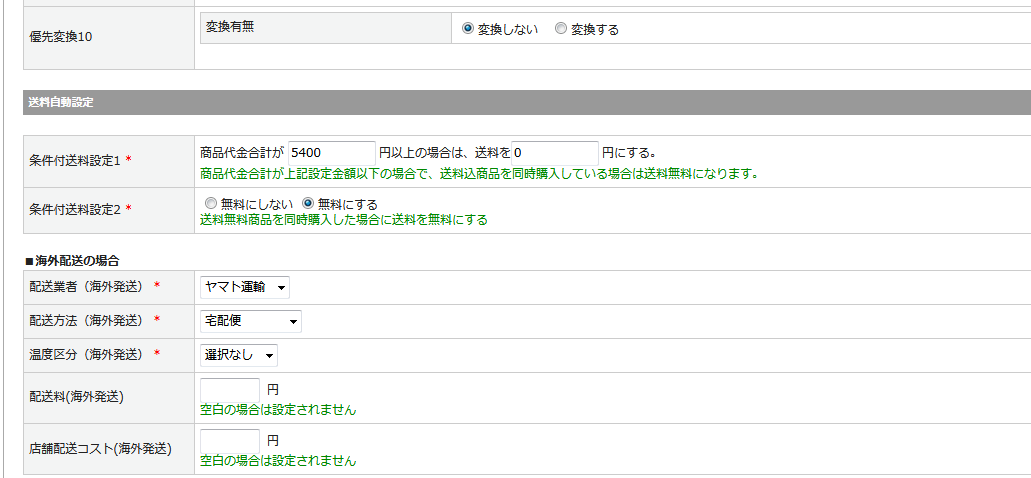 上記にて間違いなく設定されていた場合でも、優先変換の設定次第で配送方法等が変わります。