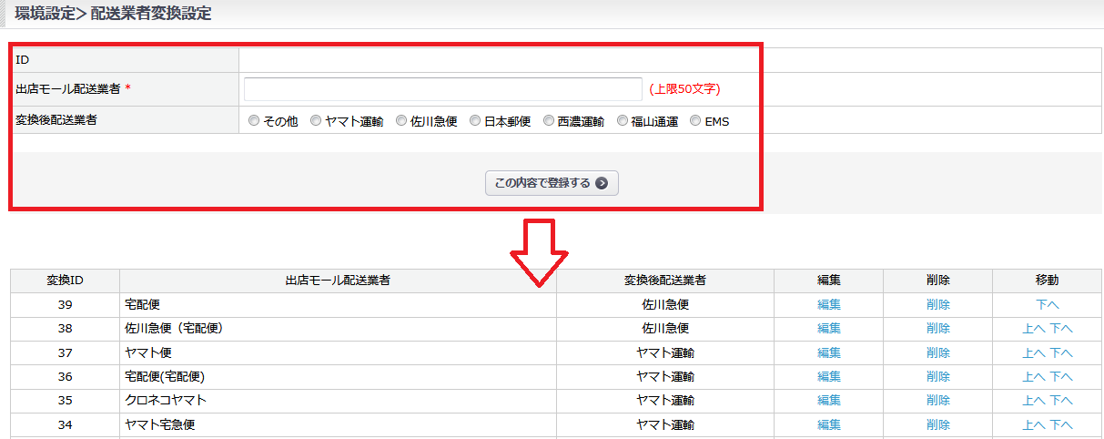 環境設定>変換設定>配送業者変換設定 の場合