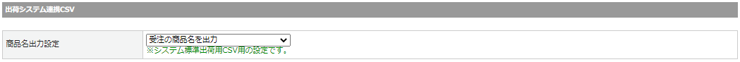 | 商品名出力設定 | 出荷システム連携CSV出力時の商品名・略称を指定します。![]() |