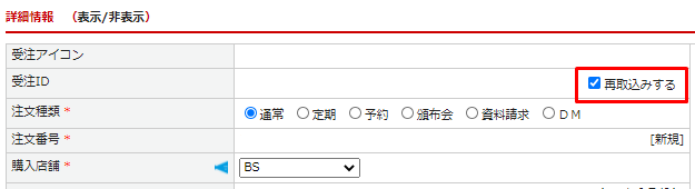 変換エラー発生時の再取り込みフラグを指定します。 「受注管理>受注登録」画面にてご確認いただけます。 ![]() |