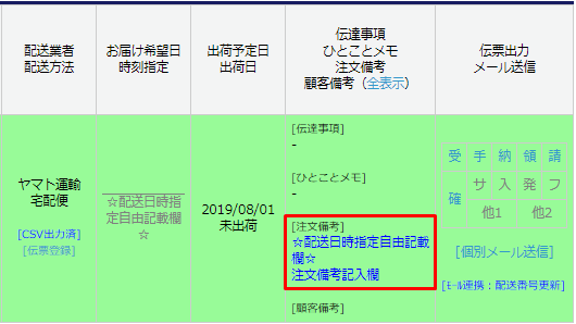 出荷システム連携CSV