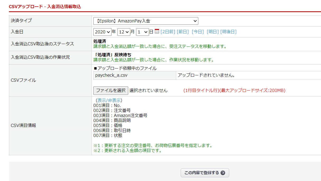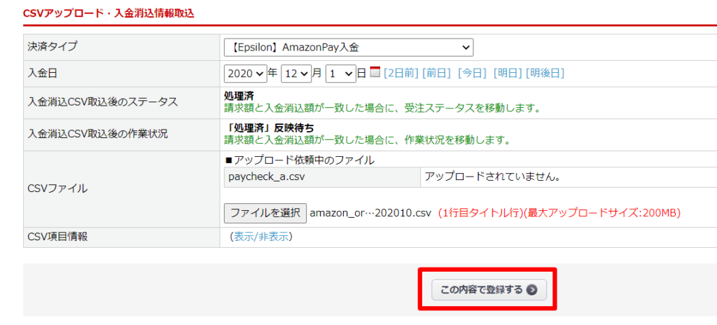 イプシロン決済サービスのAmazon Payで決済された受注を入金消込する手順です。