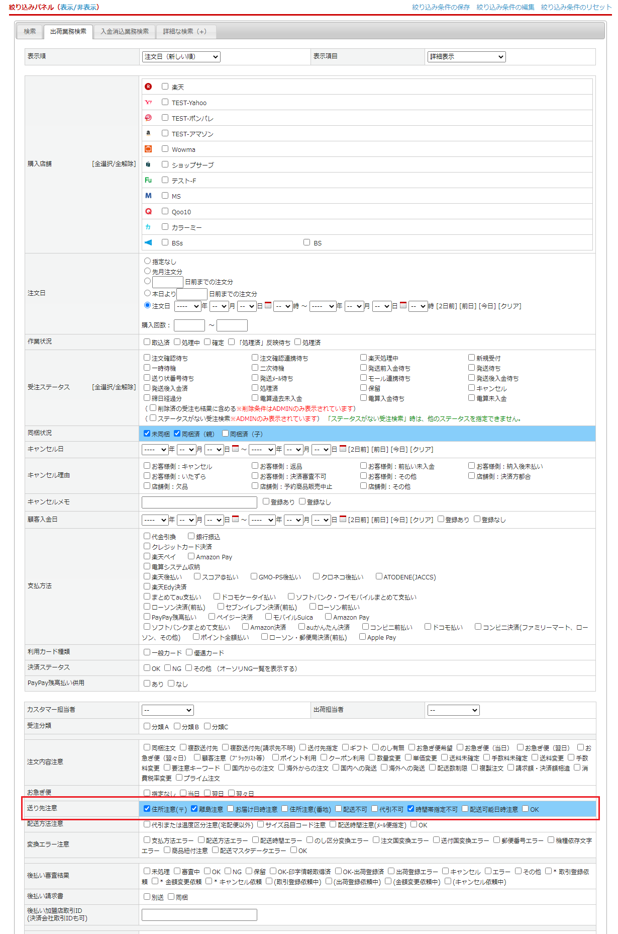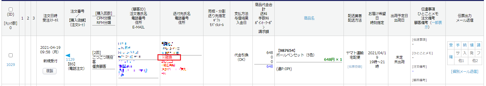 送付先が離島の場合や、時間帯指定が不可の地域の場合、スマレジEC・一元管理上で確認出来ますか 2021年8月18日 受注関連 ■回答内容 受注>受注一覧 より確認できます。警告が表示されるようになっております。 受注>受注一覧 離島エラー 受注>受注一覧 時間帯指定不可エラー 受注>受注一覧 住所注意エラー 注意喚起の文言が表示されている受注データを検索することも可能です。 この記事で解決しましたか? 〇 はい 0 × いいえ 1 「対応している送り状ソフト」 「納品書のタイトルを変更することはできますか」