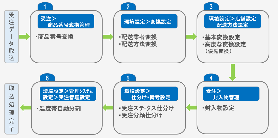 スマレジEC・一元管理の受注データ登録の処理順は以下になります。