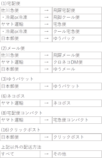 ■配送業者連携表(スマレジEC・一元管理→LINEギフト)