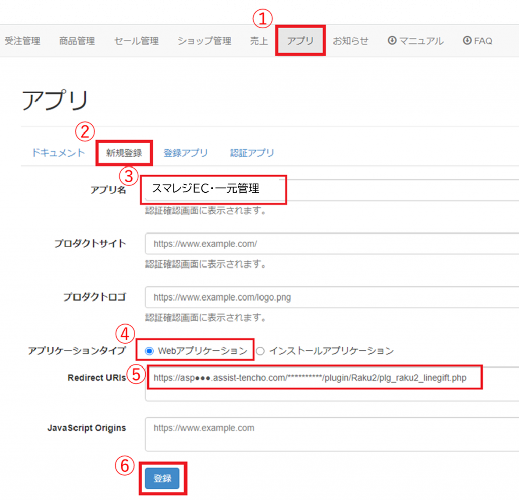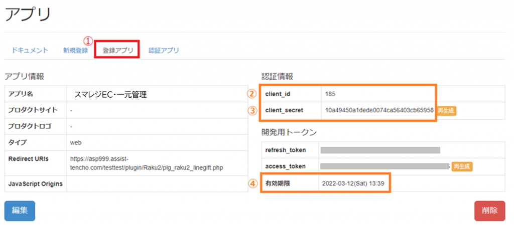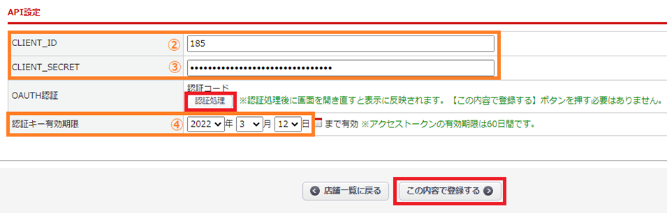 ※②~④の内容をスマレジEC・一元管理の設定で使います。