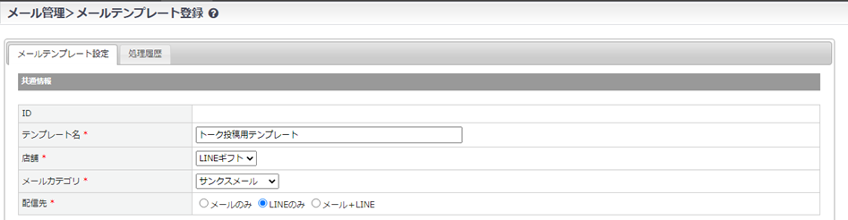 | トーク内容テンプレート | テンプレート登録が必要になります。 ※テンプレート未設定の場合、エラーが表示されます。 |