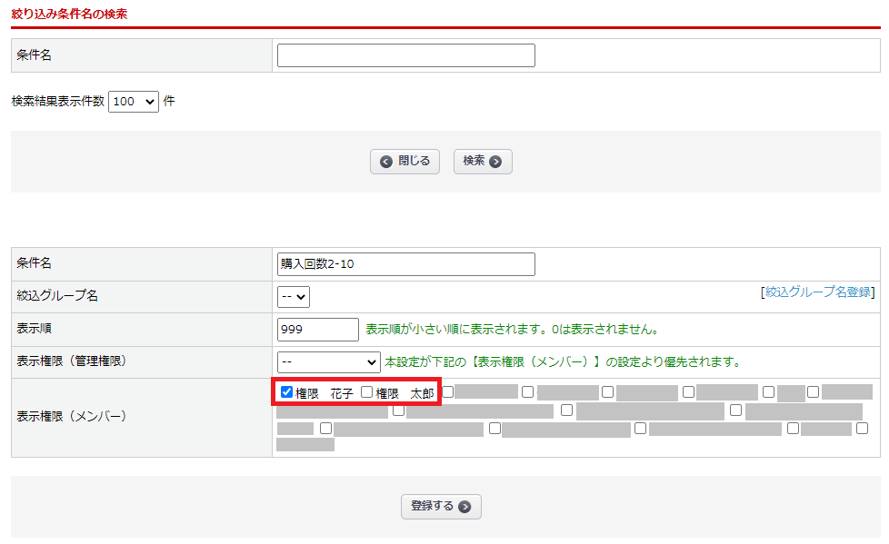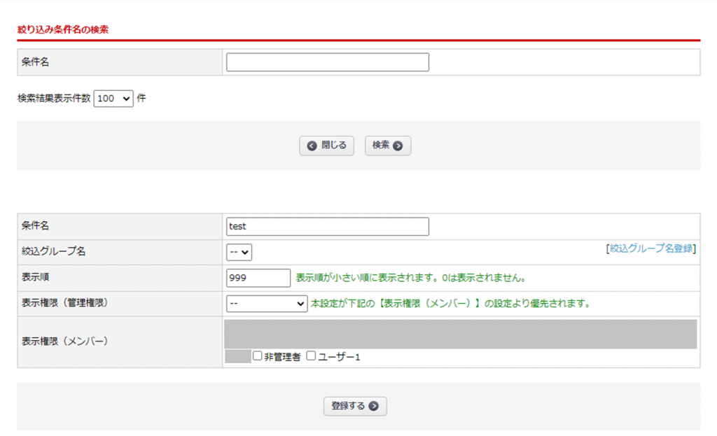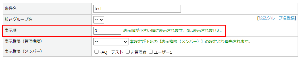 3.名称、表示順や権限など、変更したい内容を更新して登録します。