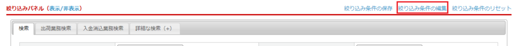 1.絞り込みパネル右上部にある「絞り込み条件の編集」をクリックします。