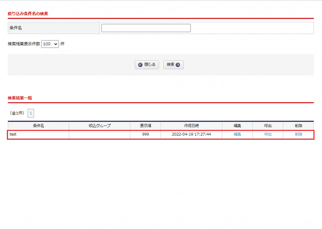 2.絞り込みパネル右上部にある「絞り込み条件の保存」をクリックします。