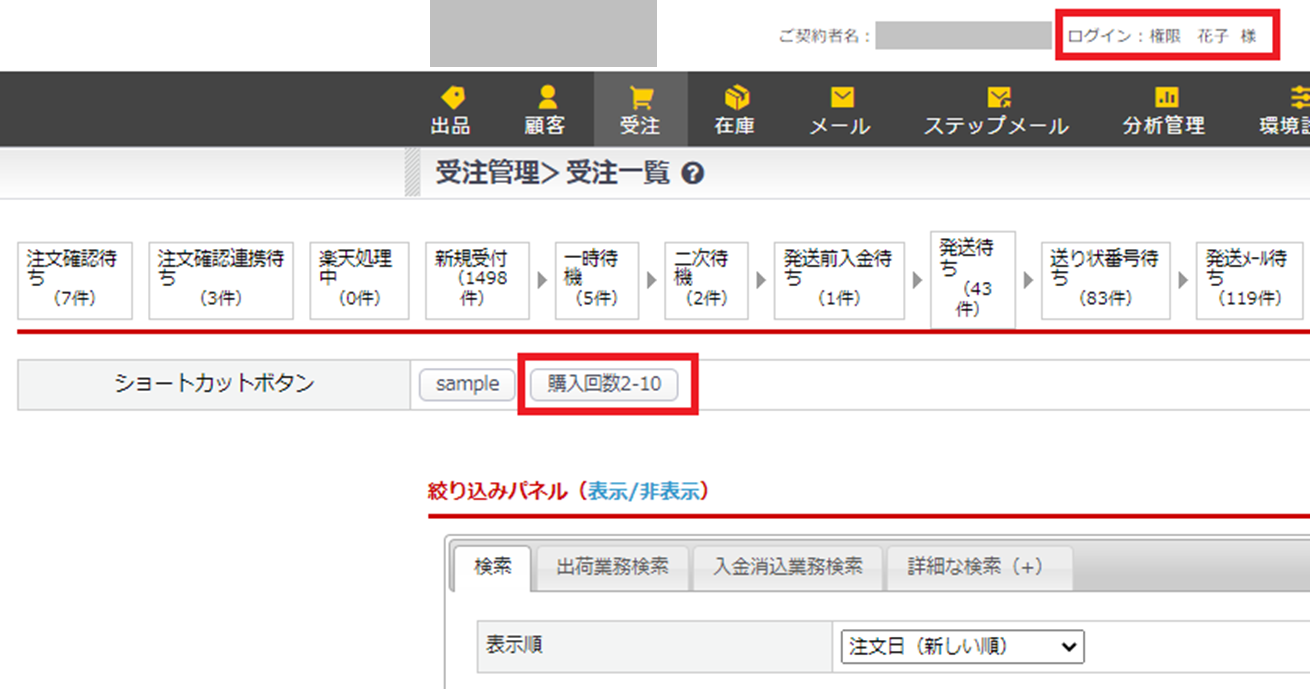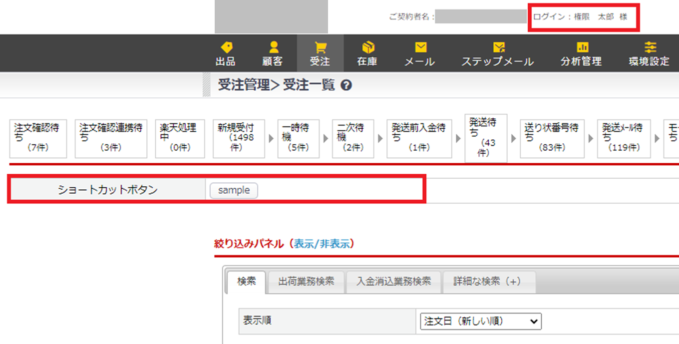 4.受注一覧を再表示でショートカットボタンの追加を確認します。