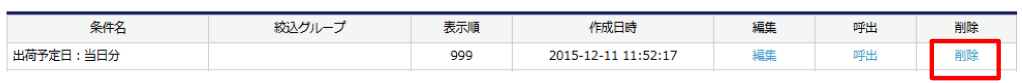 2.削除したいショートカット条件の「削除」をクリックして削除します。