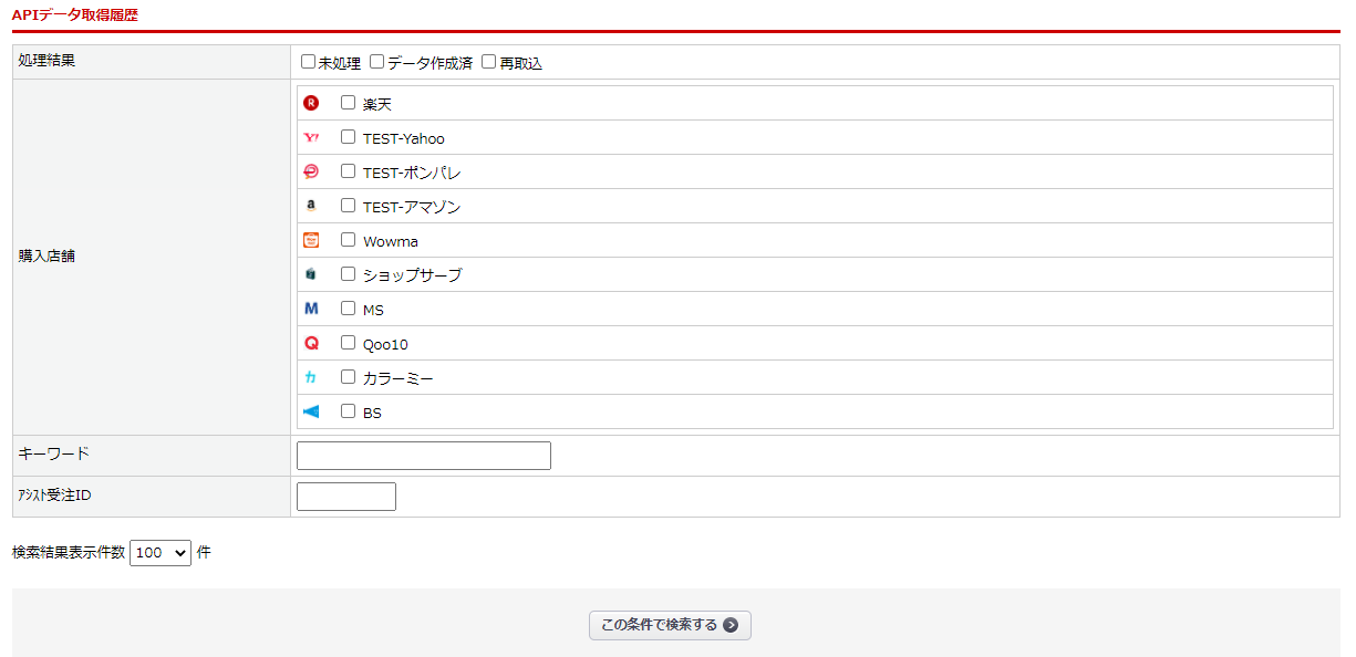 登録した店舗正式名が取込元の店舗名と異なる場合、未処理分の受注データが作成されません。