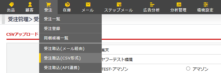 以下の操作で、STEP1でダウンロードした受注データを登録します。