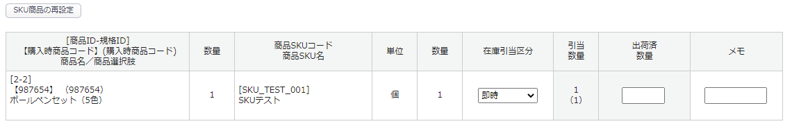 受注商品と紐づく商品SKUの再設定が可能です。