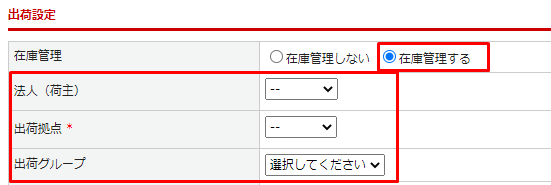 | 荷主(法人)* | 受注商品に紐づく荷主を設定します。 ※在庫管理>法人(荷主)一覧 にて登録された法人(荷主)の選択が可能です。 |