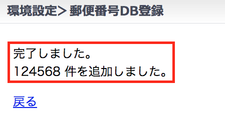 DB登録進捗状況の画面が表示されます。100%で登録完了です。