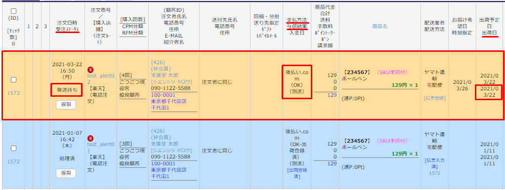 後払い決済で出荷登録(実売上)が上がっていない受注がある場合に、