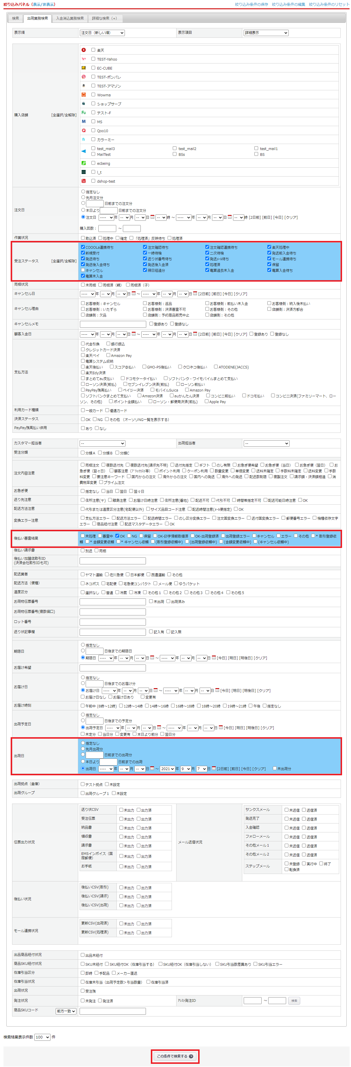 受注>受注一覧 にて、以下の条件が該当する受注データが存在する場合に、