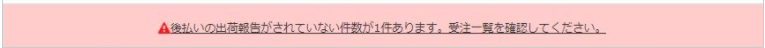 管理システム設定>画面表示設定タブにて「後払出荷報告なしの件数表示」が「表示する」になっている場合に表示されます。