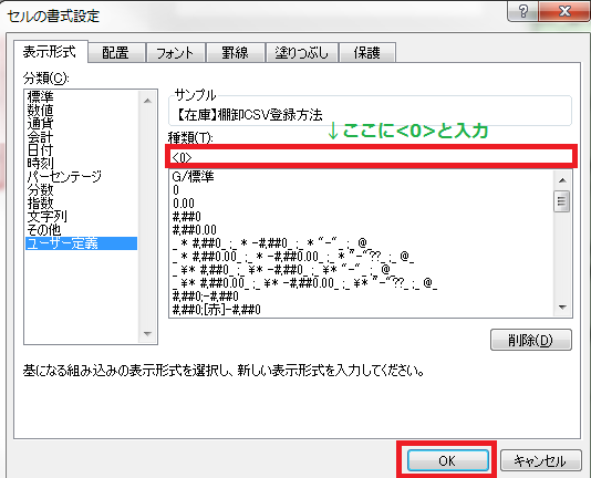 ・セルの書式設定>表示形式 「ユーザ定義」を<0> と登録する