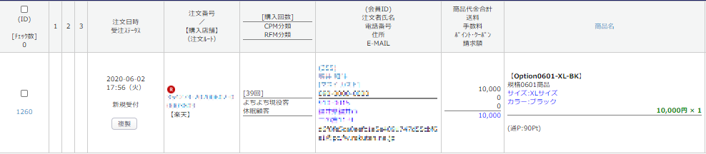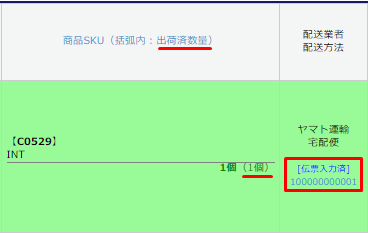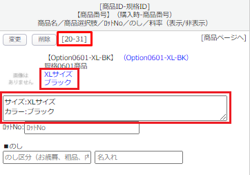 商品番号【Option0601-XL-BK】が黒文字なので、出品商品と商品SKU紐付が出来ています。