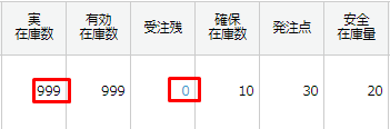 在庫連動によって有効在庫から受注残が減算したことをご確認いただけます。