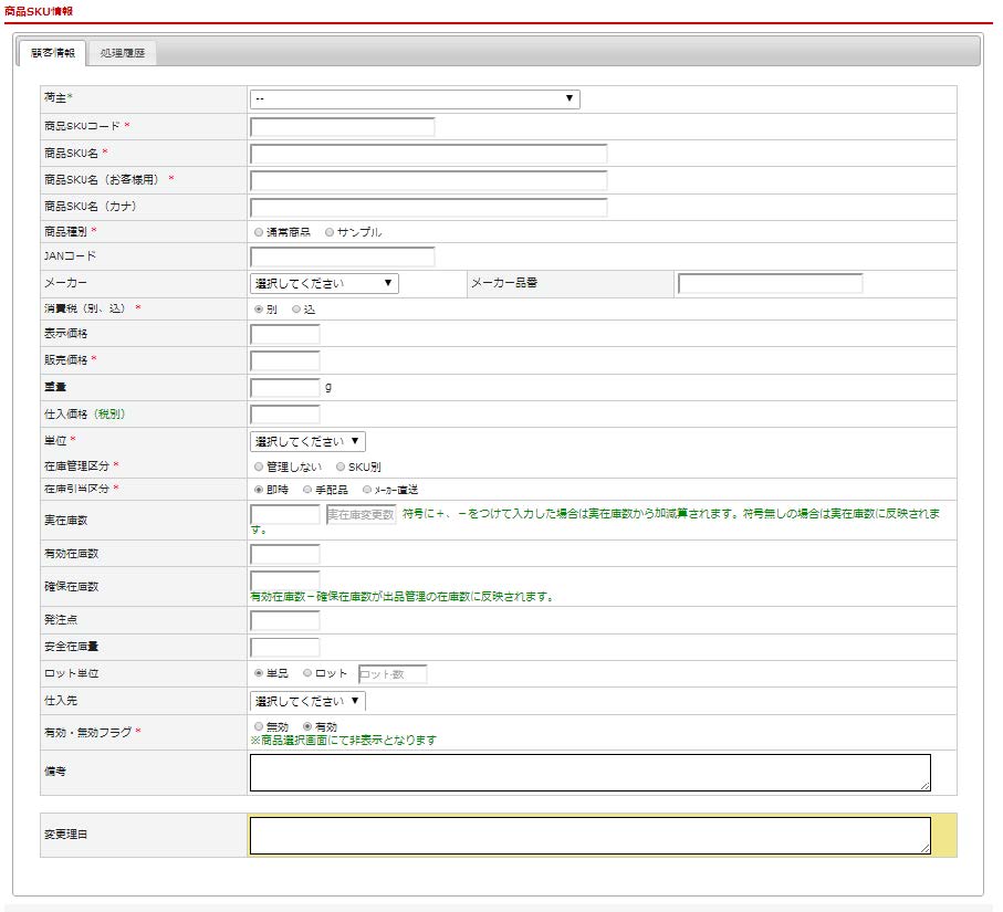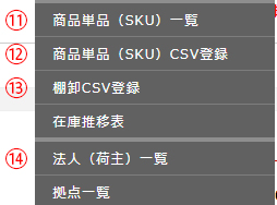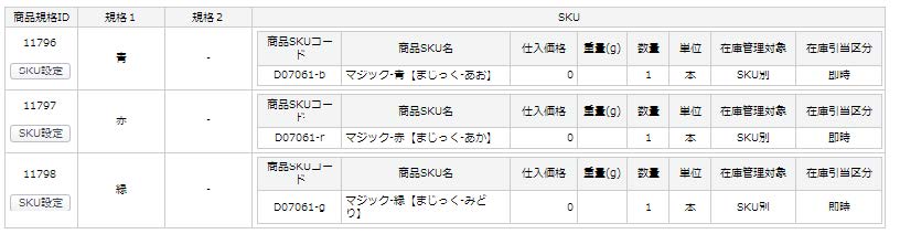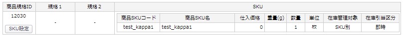 | 19 | 在庫管理区分 | 管理しない,ロット別,SKU別[デフォルト] | 〇 |