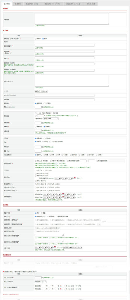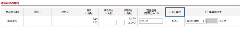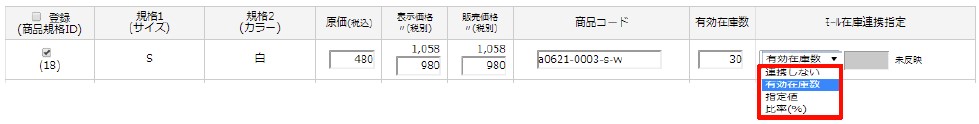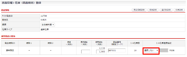 出品管理>在庫(商品規格)登録 – モール連携指定