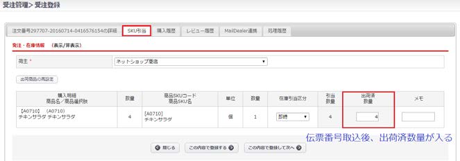 送り状ソフト(B2,ゆうプリR等)からの伝票番号取込みにて受注残が実在庫から減算されます。