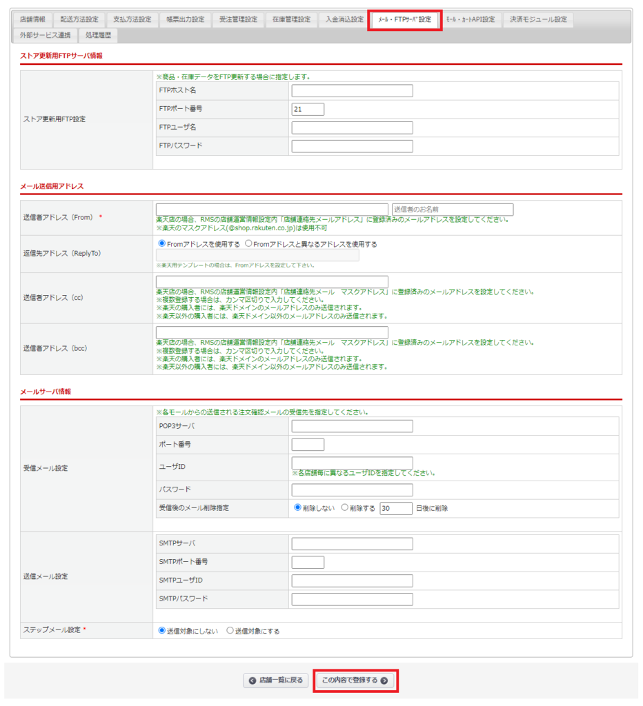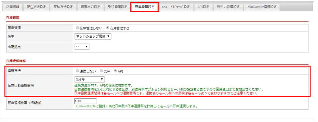 | 17 | モール在庫連携指定 | 0:連携しない、1:有効在庫、2:指定値、3:比率(%) | 〇 |
