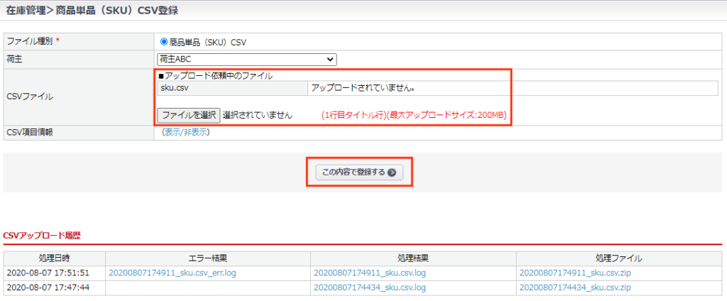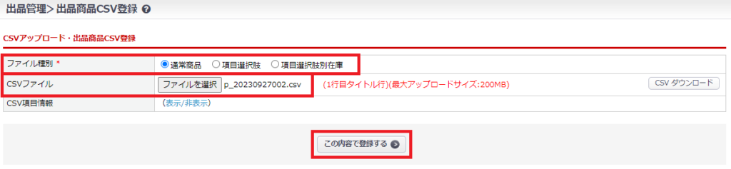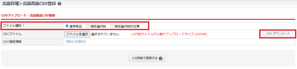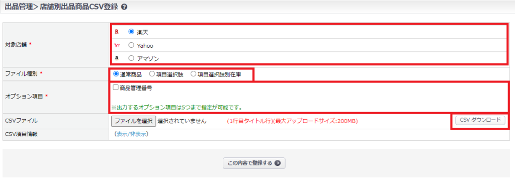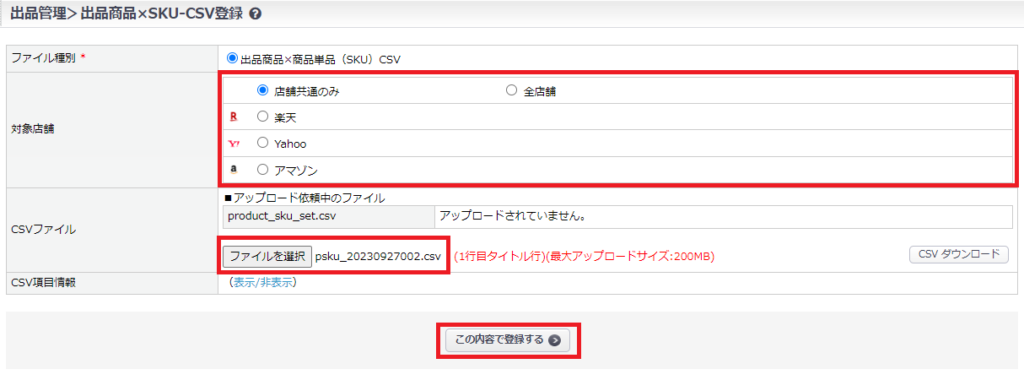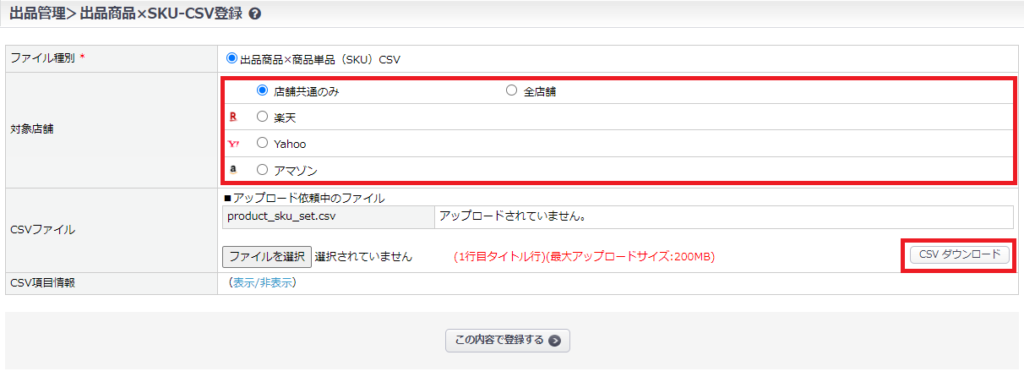 - CSVでの出品商品マスタ商品とSKUのヒモ付登録