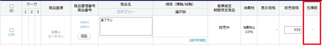| 7 | 項目選択肢別在庫用横軸選択肢 | ― | ― |