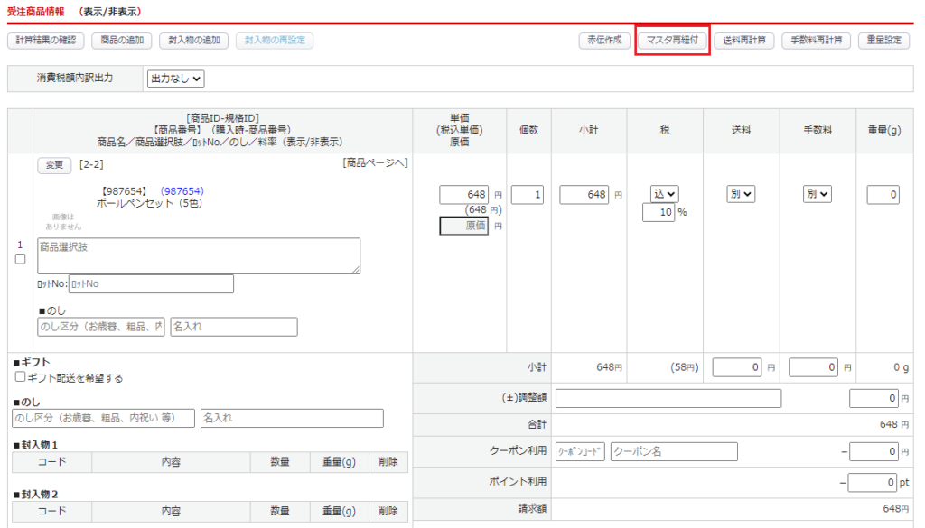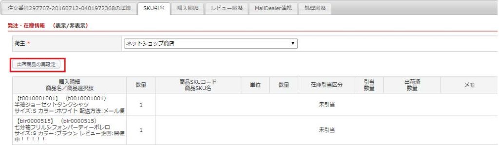 出品マスタとの紐付エラーが発生している受注を確認する ※未引当商品の確認②