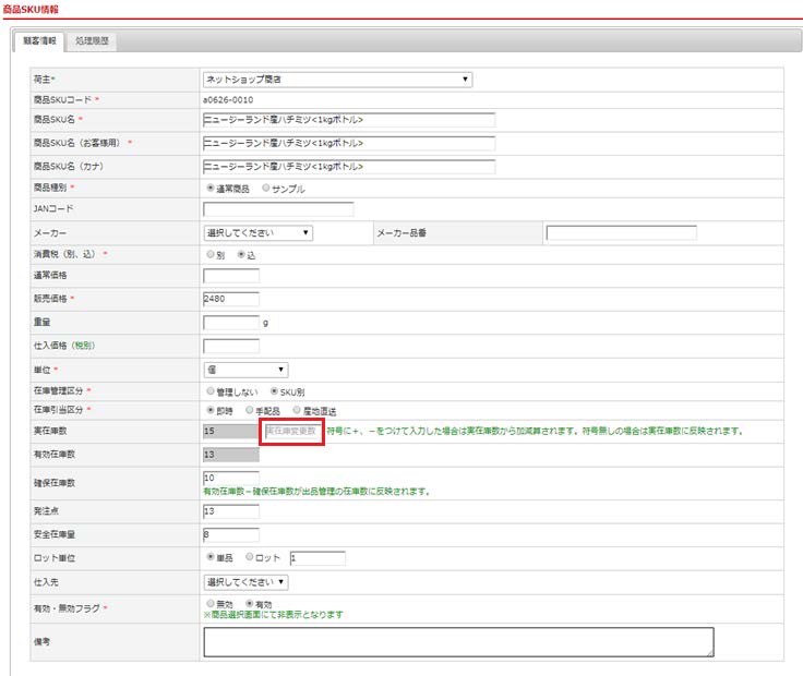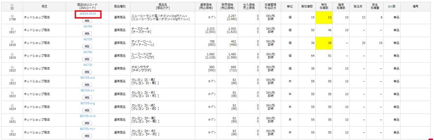 - 在庫数を変更したい商品SKUの商品SKUコードを押下する