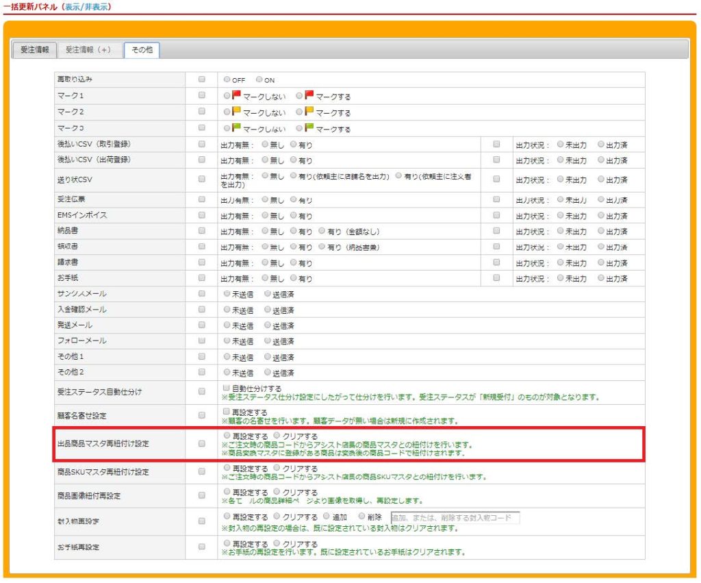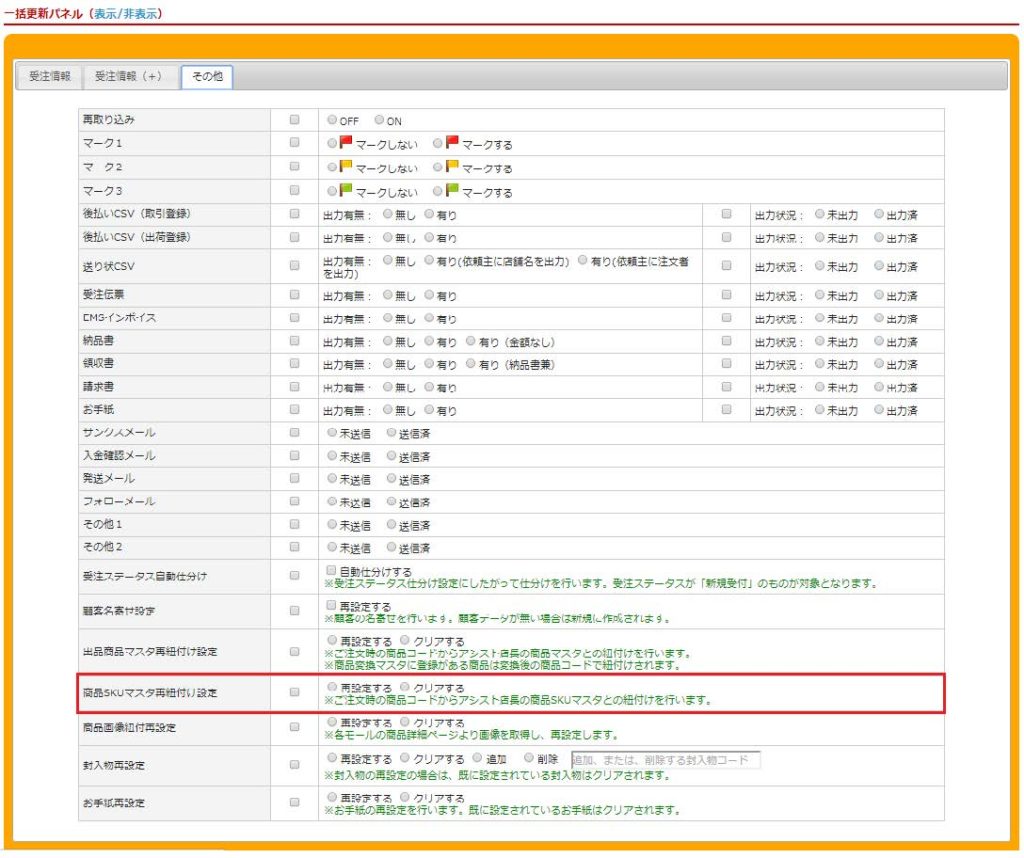 ②SKUマスタ登録およびSKUと出品商品マスタ紐付の再設定