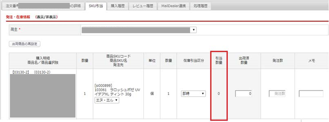 - 各受注のSKU引当を確認し、引当数が0となっている商品の発注を行う。